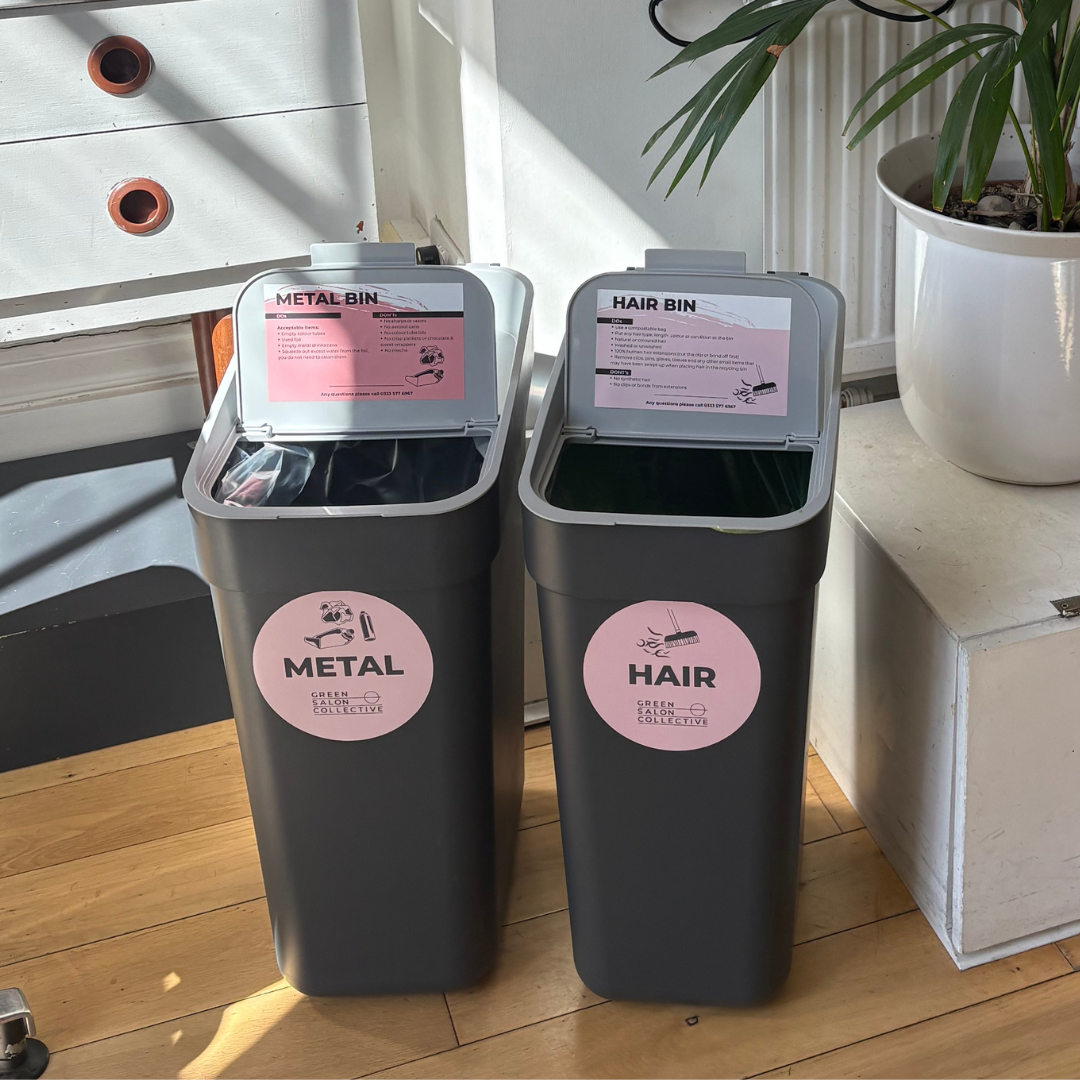 Green Salon Collective is an industry leader in the UK for hair salon recycling, salon waste management, and salon foil recycling. Our salon waste disposal system allows you to become a more sustainable salon and stand out from the crowd. We believe that no salon waste should be going to landfill, which is why we have options for every single salon waste stream to be disposed of responsibly, from the 10 different ways that we offer for hair recycling, to our general waste to energy solution for hair salon chemical waste. Through Green Salon Collective, you can get your hairdressing salon waste bins, marketing materials and the peace of mind that you're recycling your salon waste with a trusted, B-Corp certified hairdressing waste recycling company. If you'd like to become a sustainable salon and move towards a more eco-friendly future within the hair and beauty industry, get in touch today.